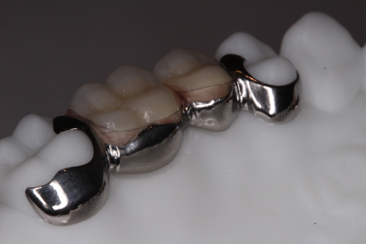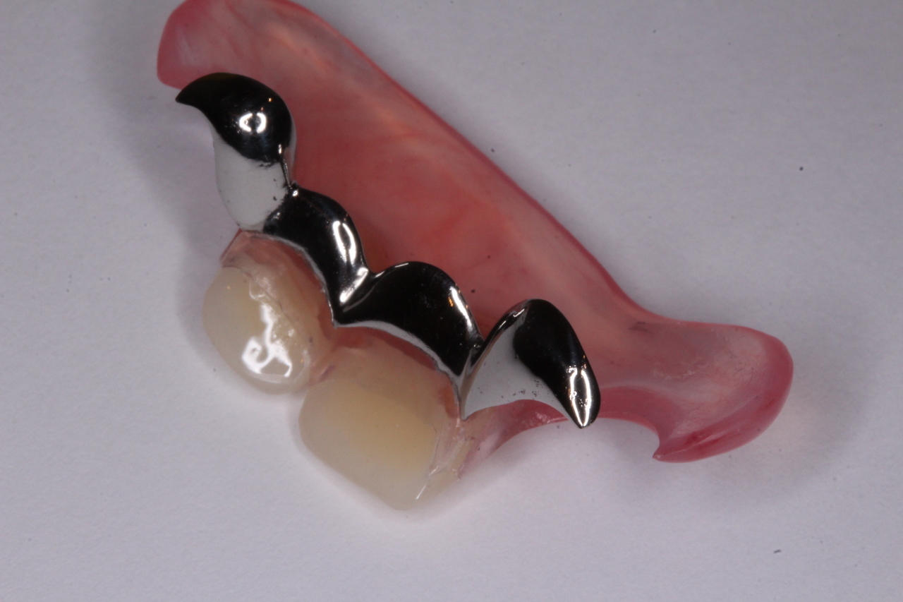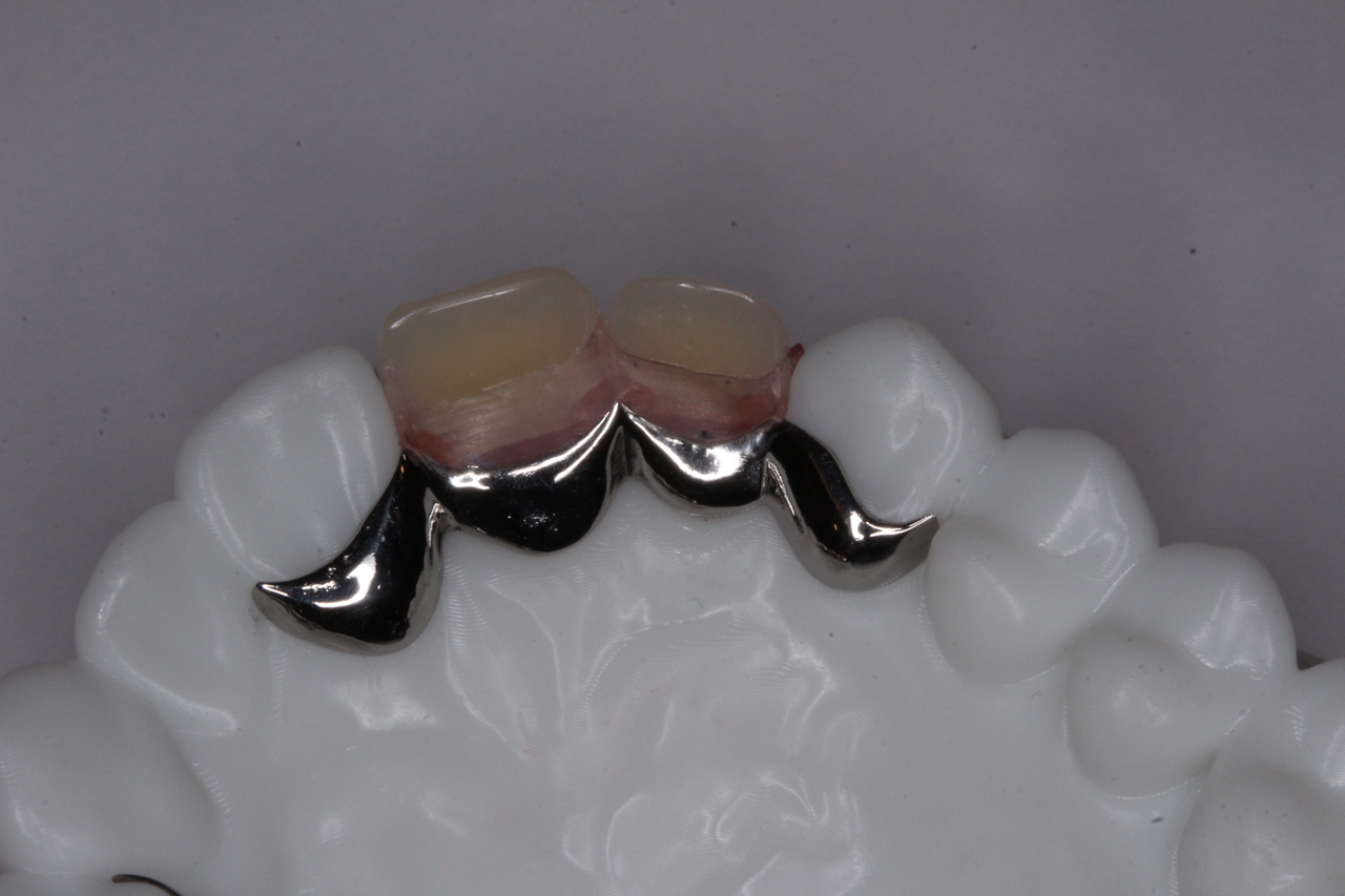 ワイヤーを使用しているため、まったく金属を使用してない入れ歯ではありません。しかし、ワイヤーができるだけ見えないよう配慮して加工されているため、金属のバネを使用した入れ歯に比べて見た目が美しい上に、まったく金属を使用しないノンクラスプデンチャーよりも強度があります。